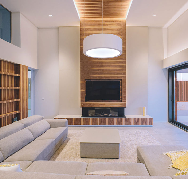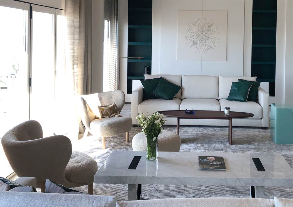 Desarrollo de mobiliario para interior realizado a medida, zona de hall, salas de estar, salones y comedor principal.
