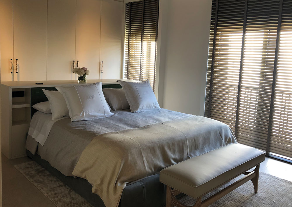 Dormitorio con mobiliario a medida con cabecero vestidor.